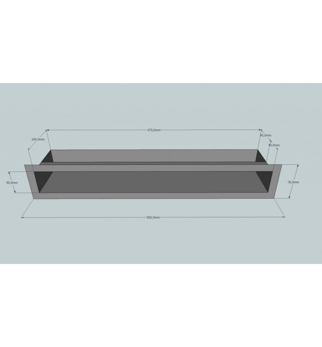 Krbová mřížka otevřená 50x9 cm pro otvor 46,5x5,5 cm.