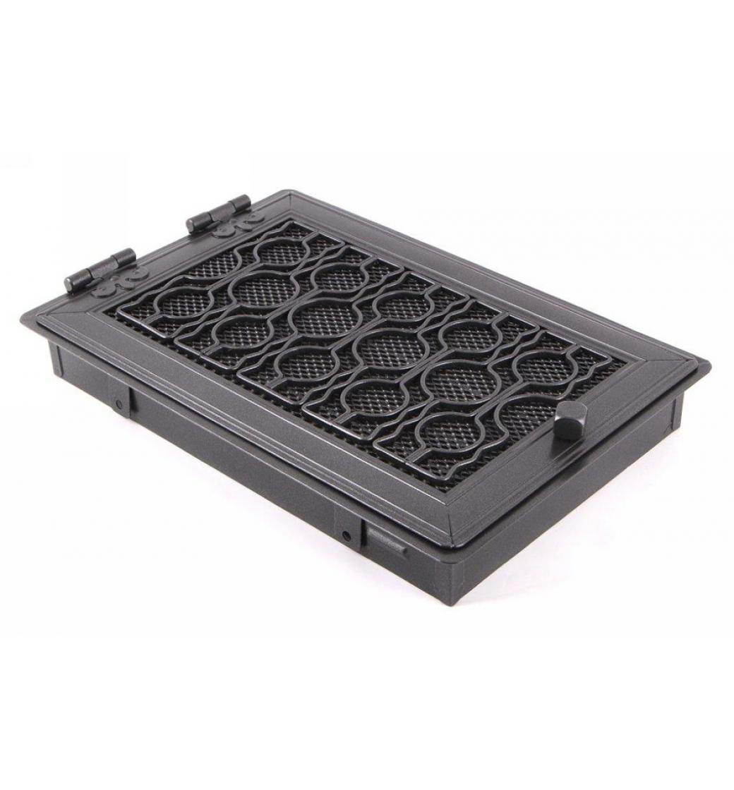Ventilační mřížky různých rozměrů a v několika barvách. Ocelové s montážním rámečkem, lakované práškovou barvou vysoké kvality, která je odolná vůči vysokým teplotám. I po několikaletém provozu zachovává svůj původní lesk a odstín. Mřížky plní též funkci dekorační. Slouží ke clonění ventilačních otvorů. Jsou vyrobeny z ocelových částí a příslušně upraveny technologickým procesem. Tento typ mřížek je určen pro montáže do komínových sopouchů, stěn a podlah (nepoužívat na stropech).Krbové mřížky - hranaté