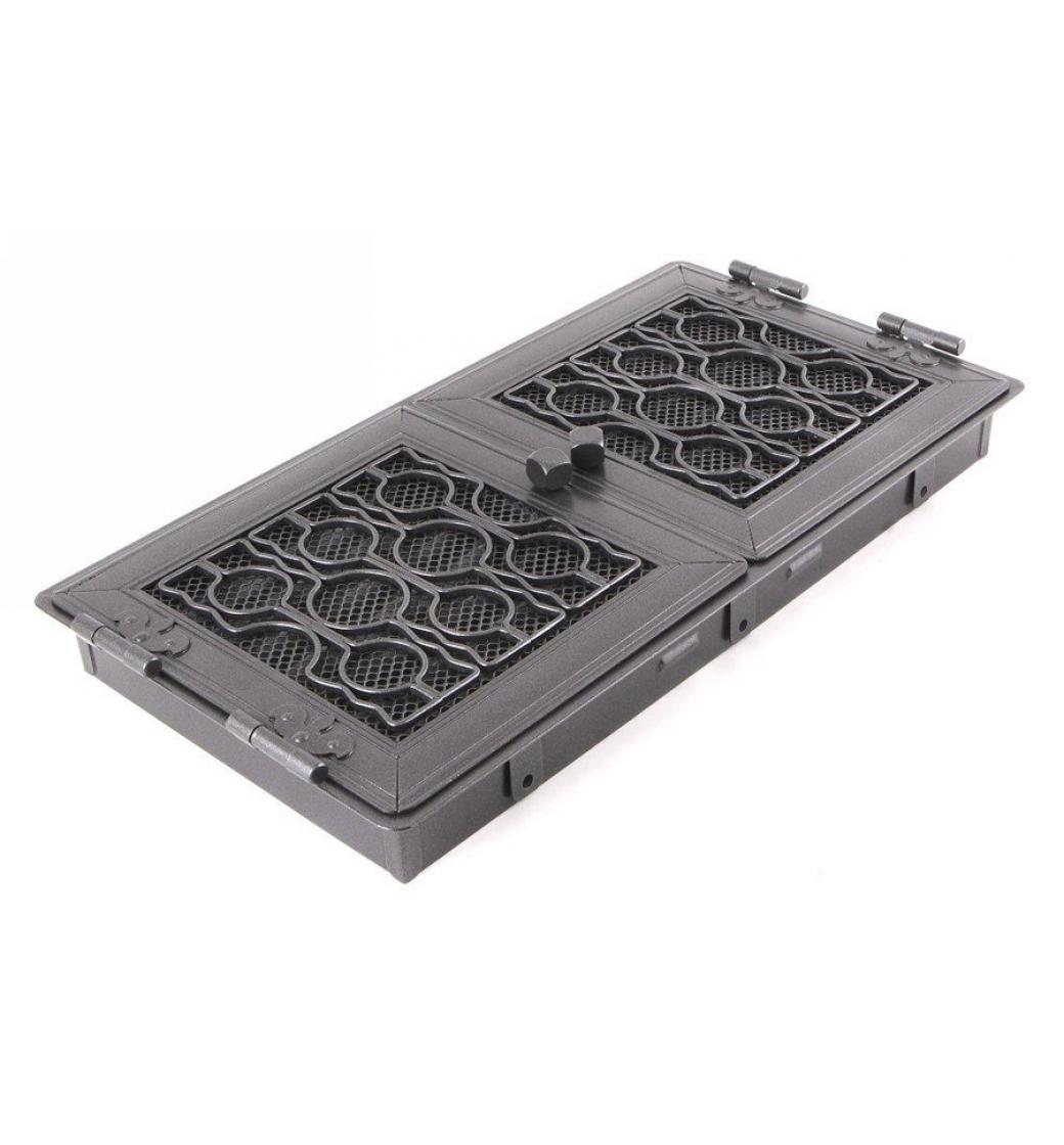 Ventilační mřížky různých rozměrů a v několika barvách. Ocelové s montážním rámečkem, lakované práškovou barvou vysoké kvality, která je odolná vůči vysokým teplotám. I po několikaletém provozu zachovává svůj původní lesk a odstín. Mřížky plní též funkci dekorační. Slouží ke clonění ventilačních otvorů. Jsou vyrobeny z ocelových částí a příslušně upraveny technologickým procesem. Tento typ mřížek je určen pro montáže do komínových sopouchů, stěn a podlah (nepoužívat na stropech).Krbové mřížky - hranaté