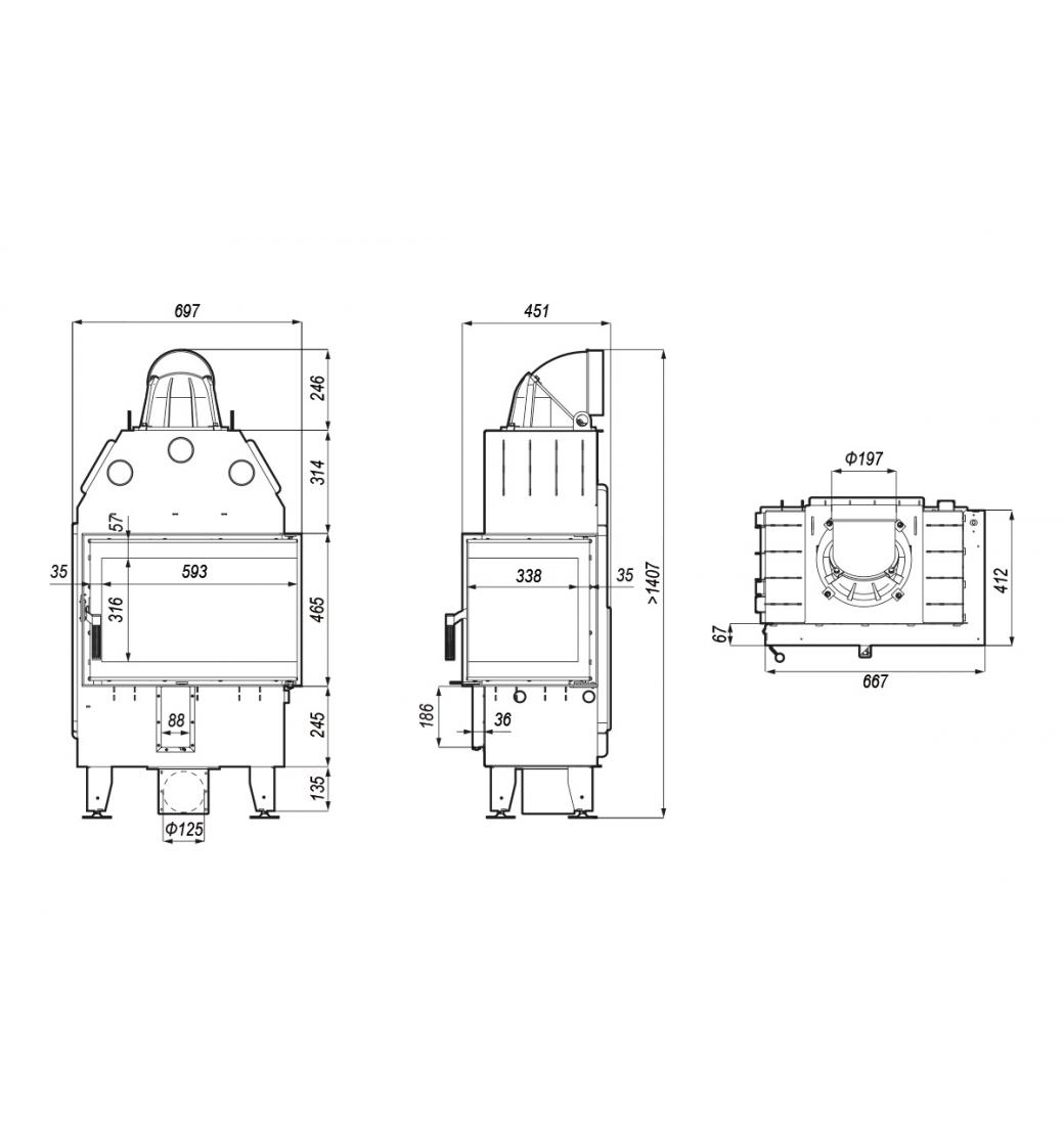 Průměr volitelného odkouření (na objednávku) 150 mm