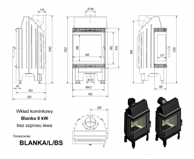 Krbová vložka KRATKI Blanka BS Levá 8 kW