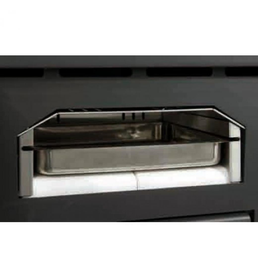 Trouba v horní části krbové vložky je vybavena teploměrem, plechem na pečení, spodní část trouby je vyložena žáruvzdornými tvarovkami.