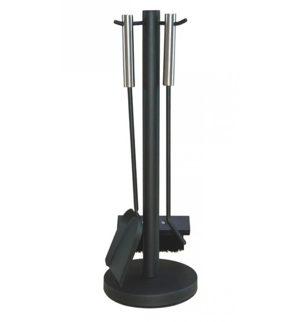 3 dílná krbová souprava v černé barvě s nerezovými madly