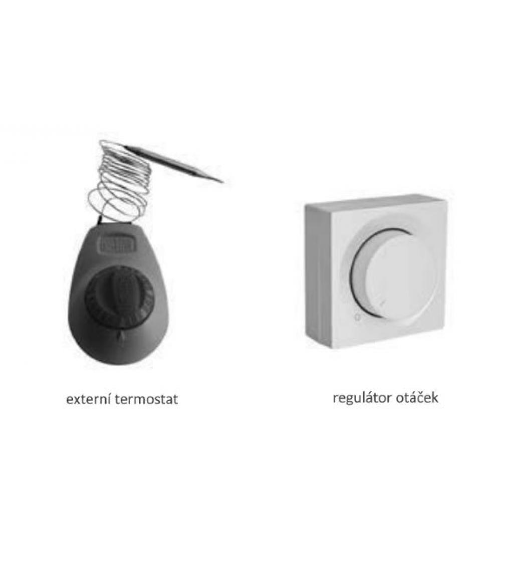 a nevyžaduje další zdroj. Externí termostat lze umístit nezávisle na ventilátoru. S jeho svorkovnicí
