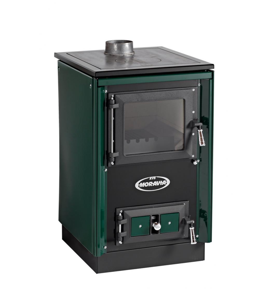 Kamna na pevná paliva KVS MORAVIA typ 9114 Sofie jsou určena k vytápění, vaření a ohřívání pokrmů. Rozměrné topeniště na palivové dřevo umožňuje použiti polen o délce do 350 mm a průměru do 230 mm.