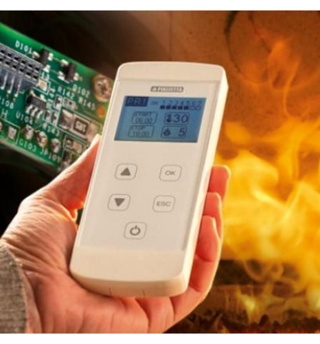 Hybridní kamna E228 A můžete používat stejně jako normální kamna na dřevo. Chcete-li ovšem přijet do vyhřátého domova když není nikdo doma, nebo nechcete bojovat s rozpalování kamen, pak si můžete kamna naprogramovat a ta se automaticky spustí na spalování pelet, než přijedete.