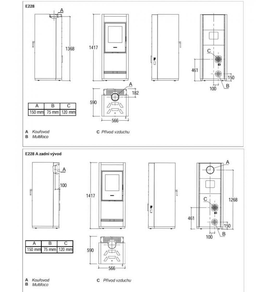 | Palivo: | dřevo (ekobrikety), dřevo+pelety, pelety |