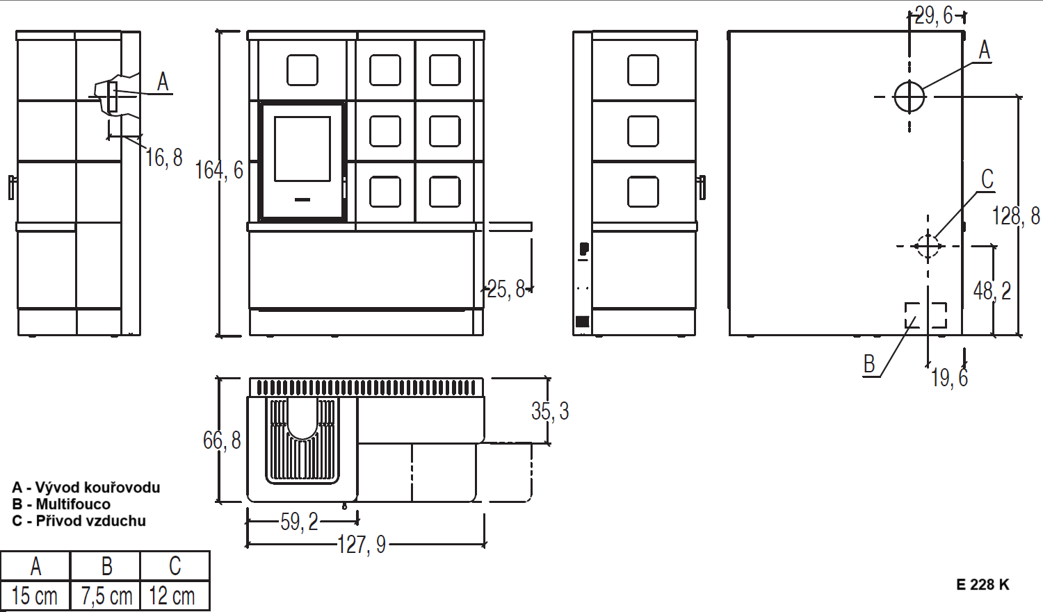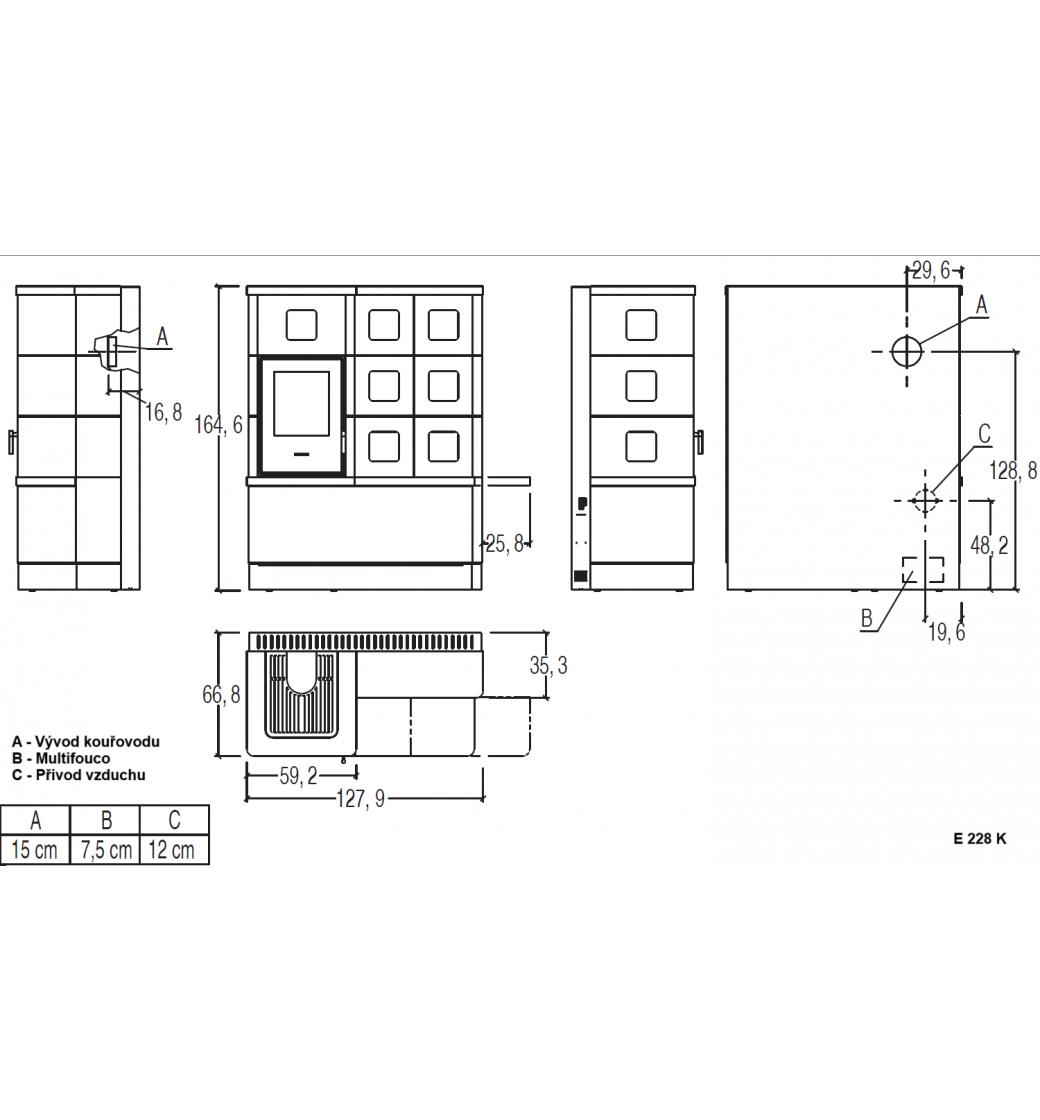 | Napojení kouřovodu: | horní + zadní |