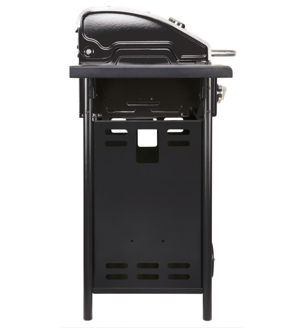 - pro ještě větší pohodlí při grilování máte k dispozici dvě odkládací plochy po stranách grilu a úložný prostor ve skříňce pod grilem ( možnost uskladnění plynové lahve (max 7kg plynu)