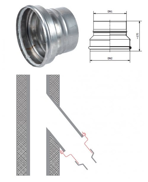 | Kouřovody nerez: | Převlečné napojení kouřovodu na keramický komín |