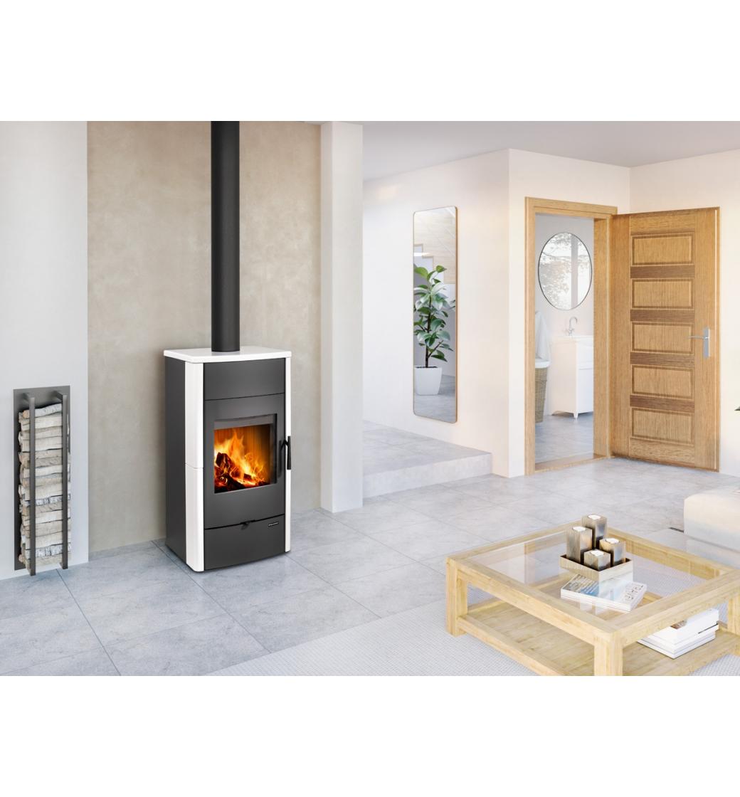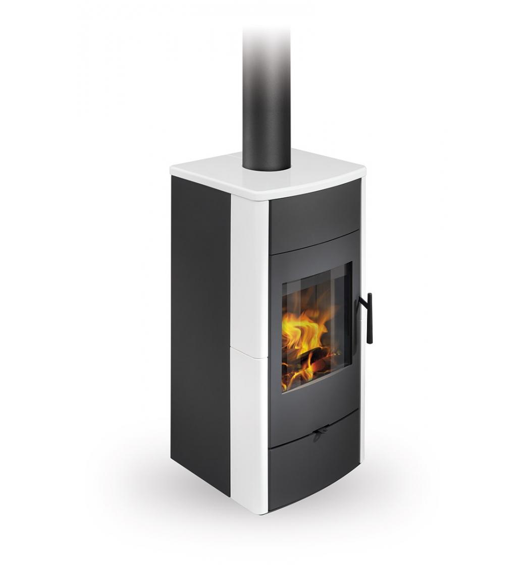 Teplovodní krbová kamna jsou vhodná pro nízkoenergetické domy díky dvěma sklům ve dveřích kamen. Účinný teplovodní výměník o objemu 28l dokáže přenést do vody 70% energie a 30% do vzduchu. Inovativní systém vedení spalin DOUBLE SPIN zvyšuje účinnost kamen. Kamna disponují systémem CPV – centrální přívod externího vzduchu. Ve standardu je možné zapojení horního odvodu spalin. Díky sekundárnímu přívodu vzduchu je sklo dvířek omýváno, a tak nedochází k usazování nečistot. Spalovací komora je vyložena šamotovými tvarovkami. Regulaci primárního a sekundárního přívodu vzduchu lze řídit jediným ovládacím prvkem. Ve spodní části kamen je uzavíratelný dřevník, který umožnuje uskladnění menší zásoby dřeva nebo krbového nářadí. Kamna jsou vybavena vychlazovací smyčkou proti přetopení výměníku.