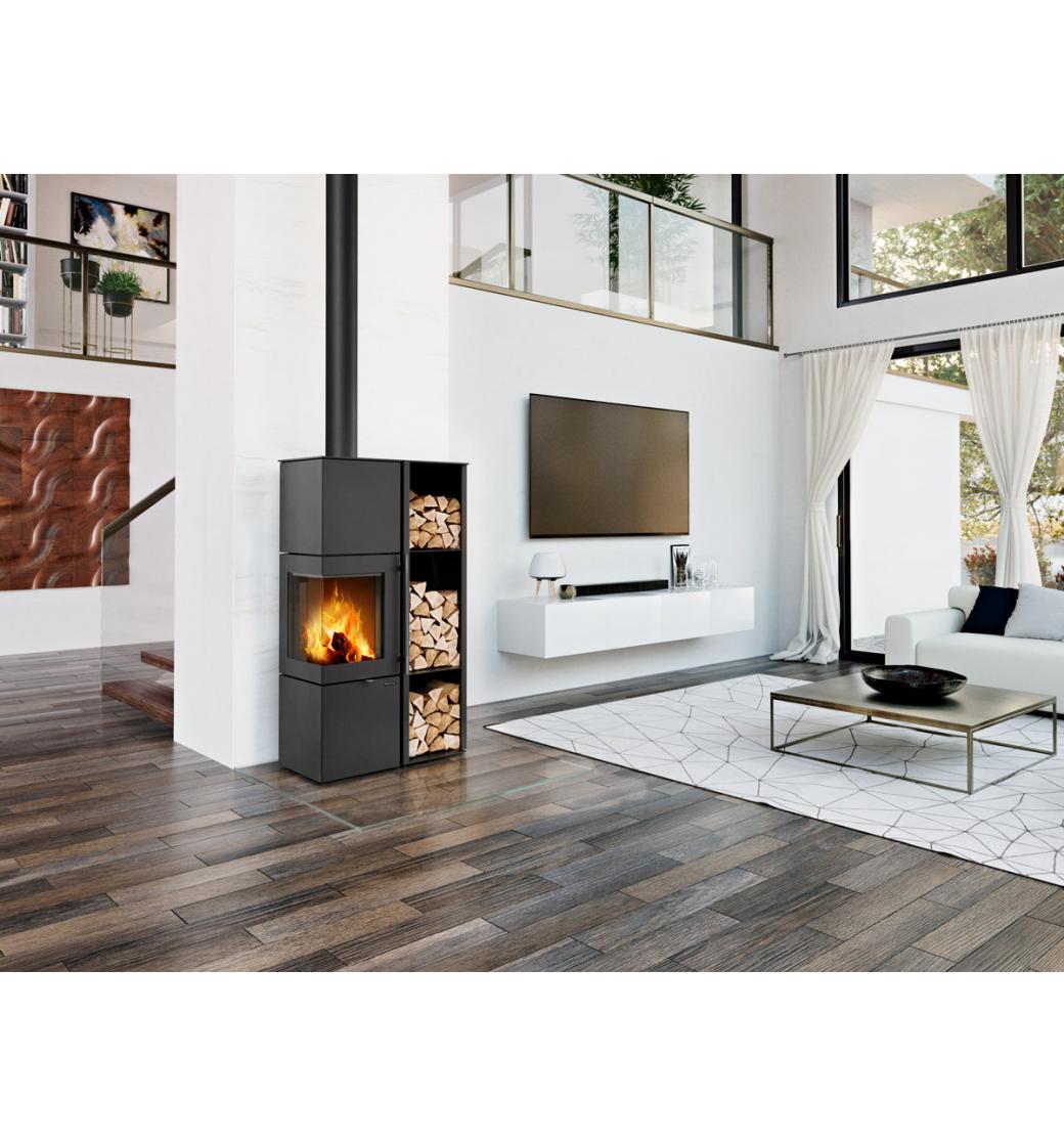 Akumulační krbová kamna ESQUINA H upoutají moderním designem, kompaktními rozměry a výrazným rohovým prosklením, které umožňuje sledovat plameny z více úhlů. Perfektně zapadnou do současných interiérů a nabízí nejen styl, ale i vysoce efektivní způsob vytápění.
