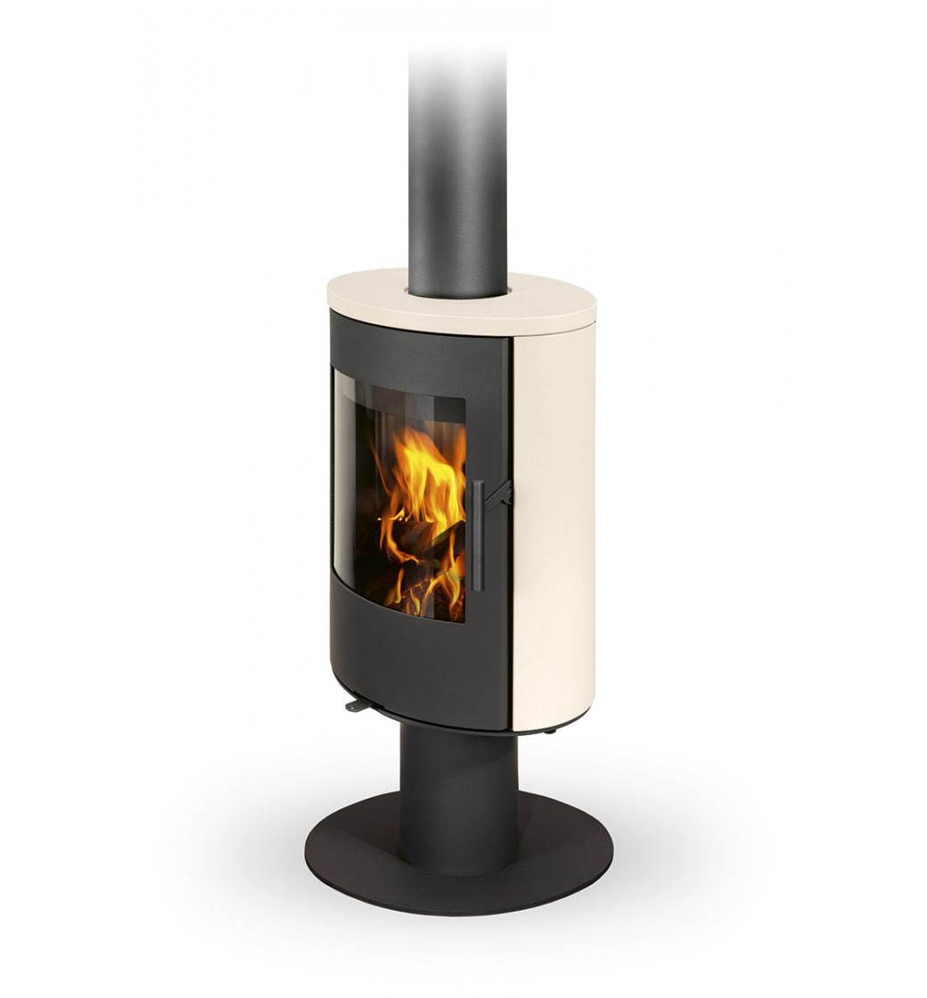 Otočné topeniště umožňuje přizpůsobit orientaci ohně aktuálnímu prostoru a keramické provedení dodává kamnům jedinečný charakter.