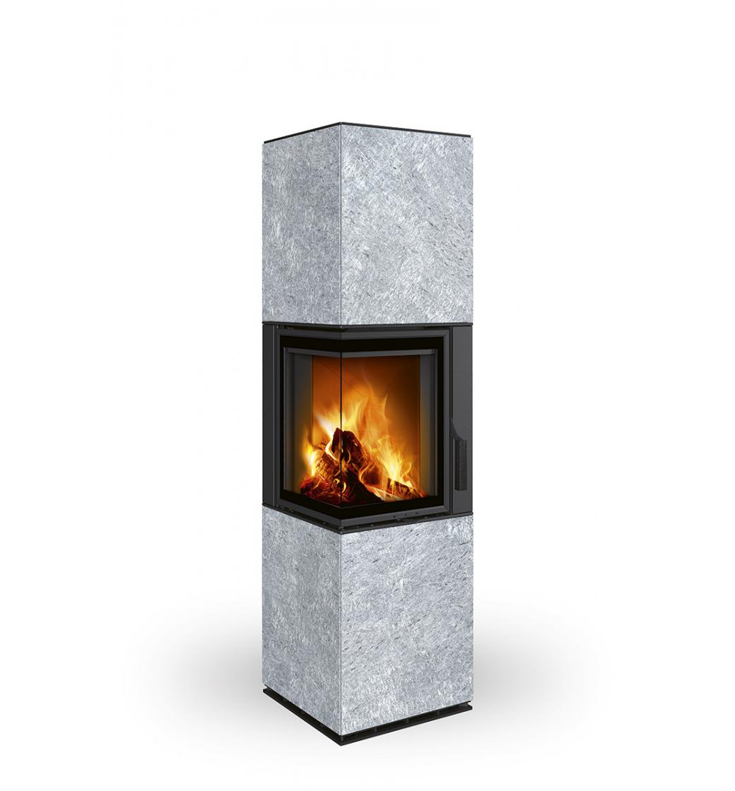 Velkorysé rohové prosklení nabízí fascinující pohled na plameny z obou stran – ať už si vyberete variantu s pravým (R) nebo levým (L) prosklením. Krb tak vytváří jedinečnou atmosféru a dodává interiéru pocit otevřenosti i světla.