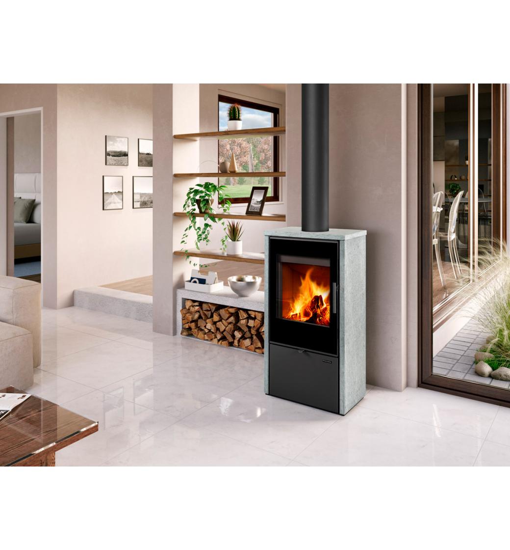 Kamna jsou vhodná pro nízkoenergetické domy. Dvířka mají velkoplošné designové prosklení a kamna disponují systémem CPV – centrální přívod externího vzduchu. Ve standardní výbavě je možné horní nebo zadní zapojení odvodu spalin. Sekundární přívod vzduchu udržuje sklo čisté a zabraňuje usazování nečistot.