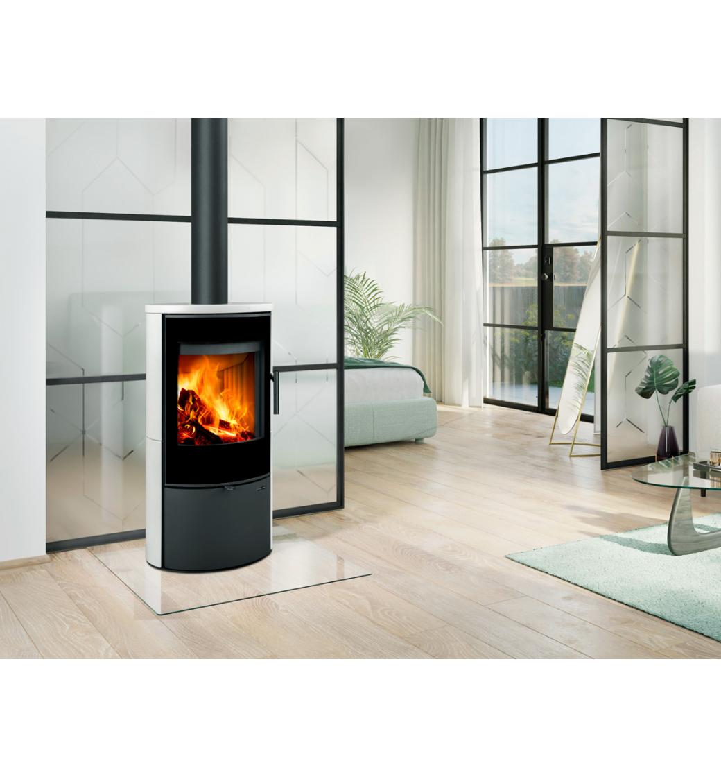 Krbová kamna jsou vhodná pro nízkoenergetické domy a díky designově potištěnému velkoplošnému prosklení skvěle zapadnou do moderních prostor. Vybavena jsou systémem CPV centrální přívod externího vzduchu, který zajišťuje efektivní spalování i při současném utěsnění stavby.