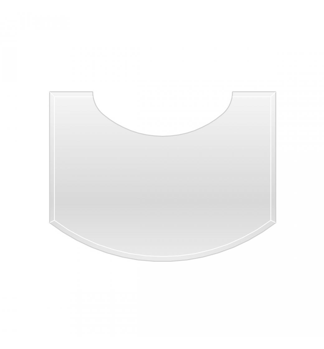 Sklo pod kamna,tvrzené čiré,odolné vůči vysokým zátěžím. Broušená fazeta na nášlapných hranách eliminuje možnost zakopnutí o hranu.