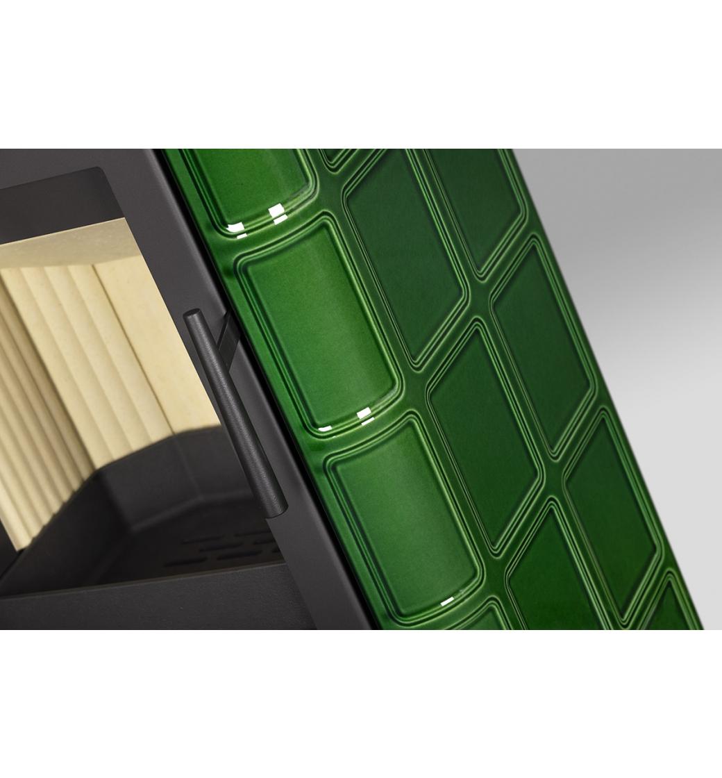 Kachlová kamna jsou vhodná i do nízkoenergetických staveb. Díky centrálnímu přívodu externího vzduchu CPV do topeniště není spotřebováván vzduch z interiéru. Konstrukce kamen umožňuje zapojení horního nebo zadního odvodu spalin. Sklo dvířek je na vnitřní straně oplachováno přívodem sekundárního vzduchu a zabraňuje tak usazování nečistot. Spalovací komora je vyložena šamotovými tvarovkami. Regulace primárního a sekundárního přívodu vzduchu se ovládá jediným ovládacím prvkem.