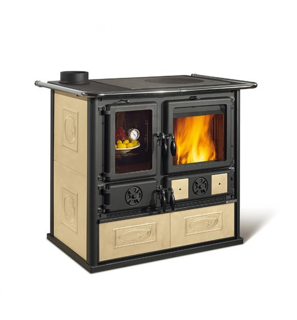 Kvalitní litinový sporák na topení dřevem a dřevěnými briketami s velikým proskleným ohništěm a kachlovým obkladem. Velice populární sporák nejen na chaty a chalupy, kde se využije především na topení, ale i smaltovaná trouba na příležitostné pečení a velká litinová plotna na vaření. Jako jeden z mála sporáků na trhu, umožňuje v zadní části napojení na externí přívod vzduchu a nečerpá tak vzduch pro hoření z místnosti.
