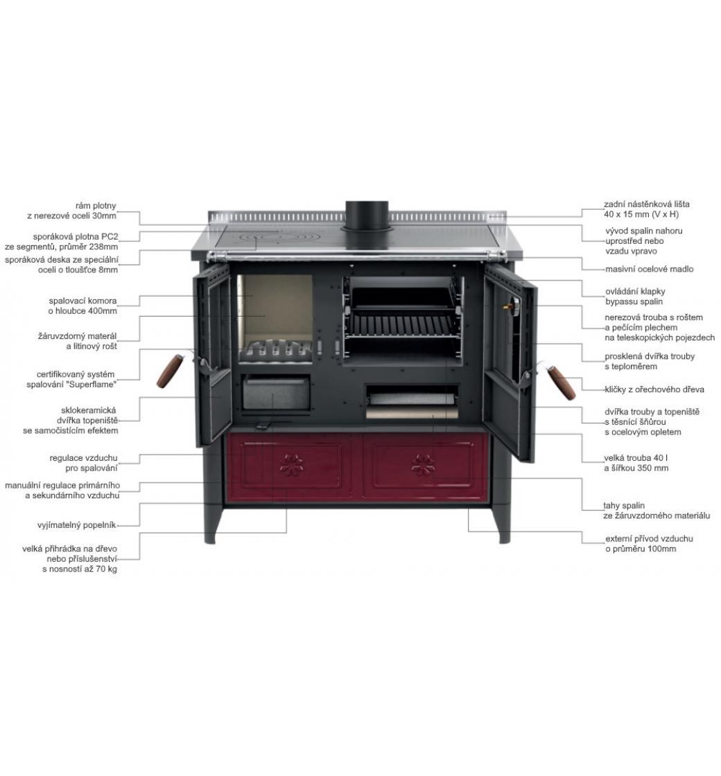 - Sporáková deska ze speciální oceli o tlouštcě 8mm
