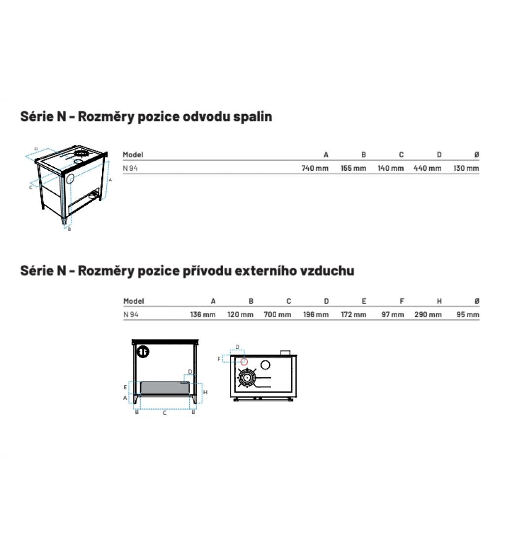 | Vývod kouřovodu: | zadní vpravo nebo horní uprostřed |