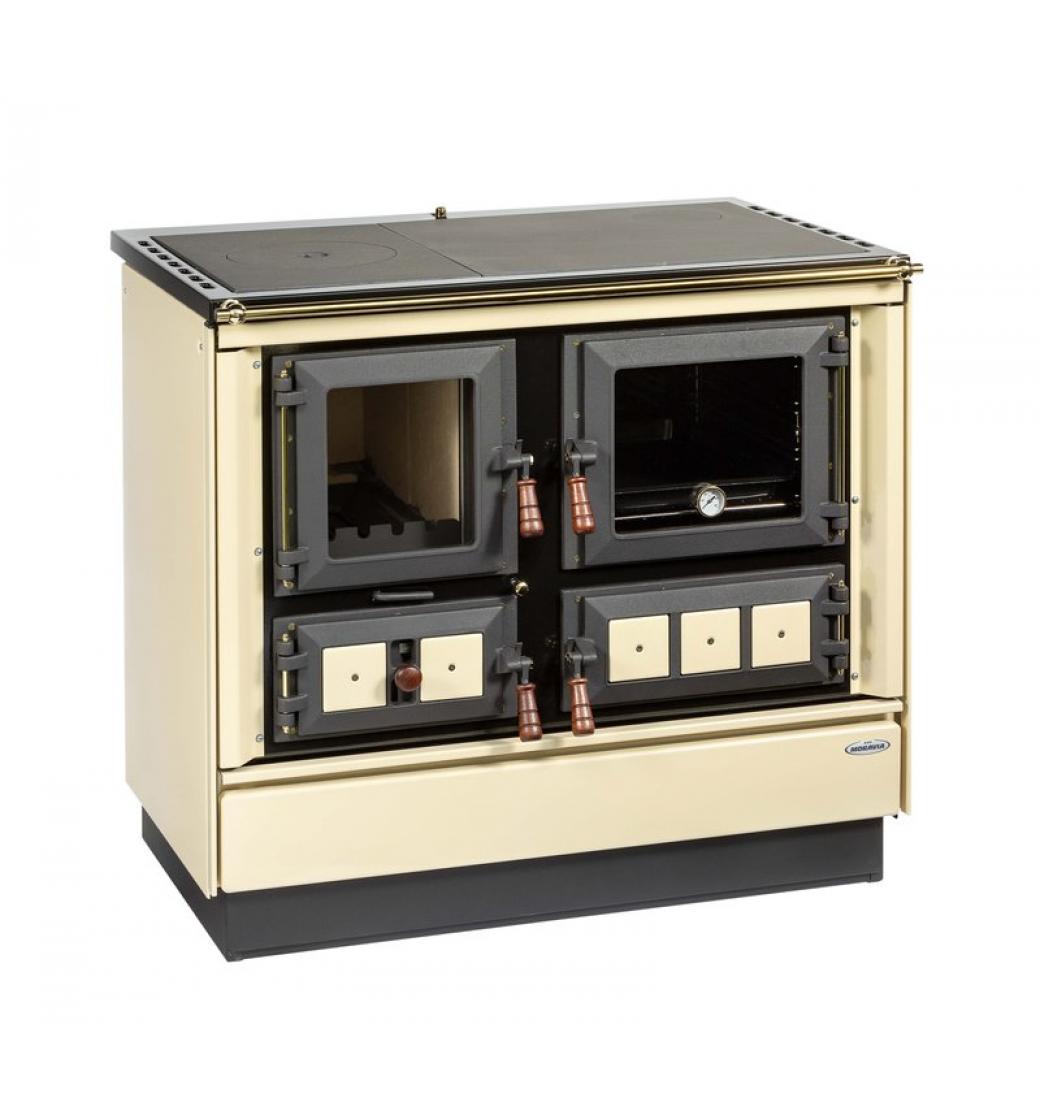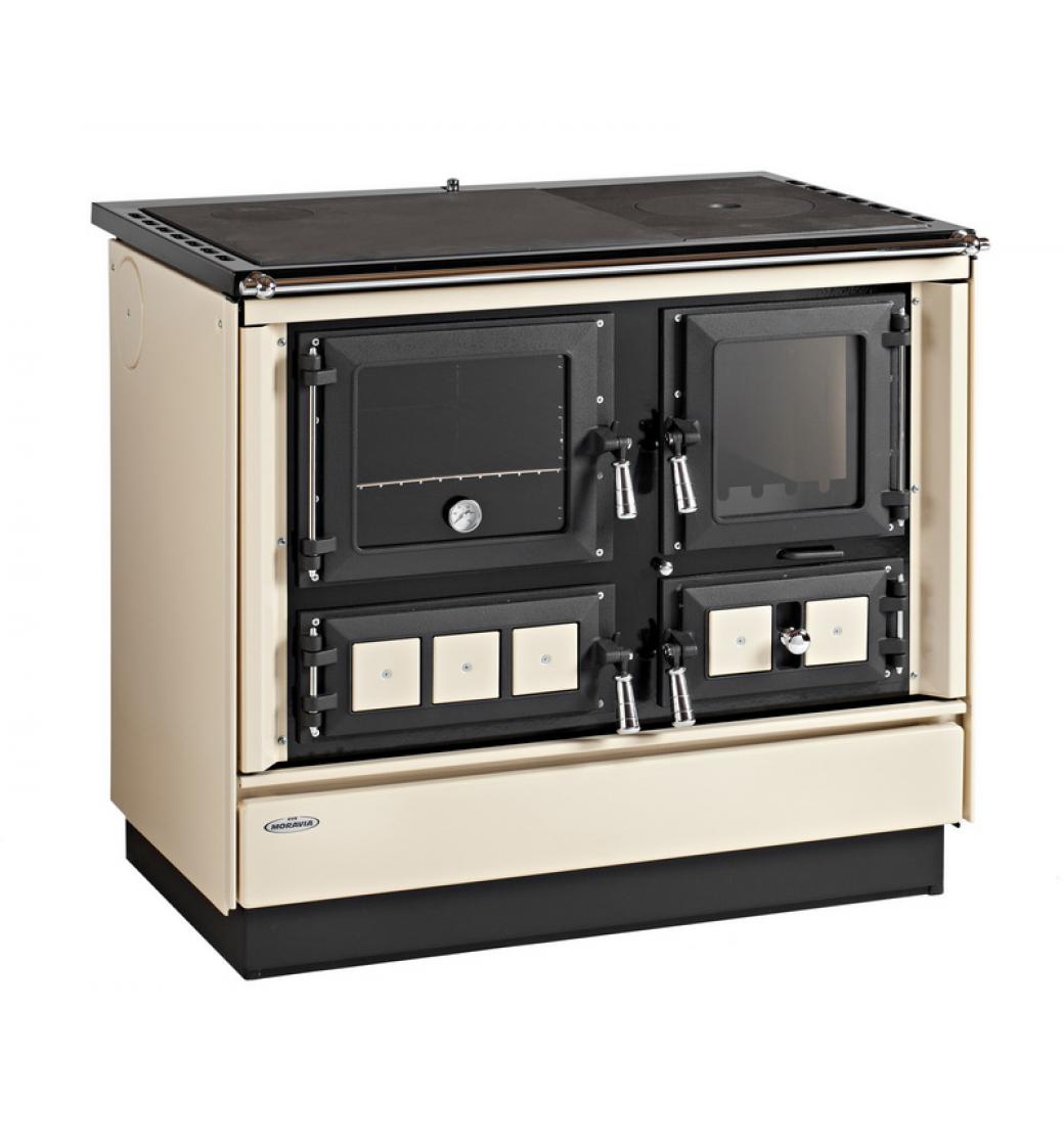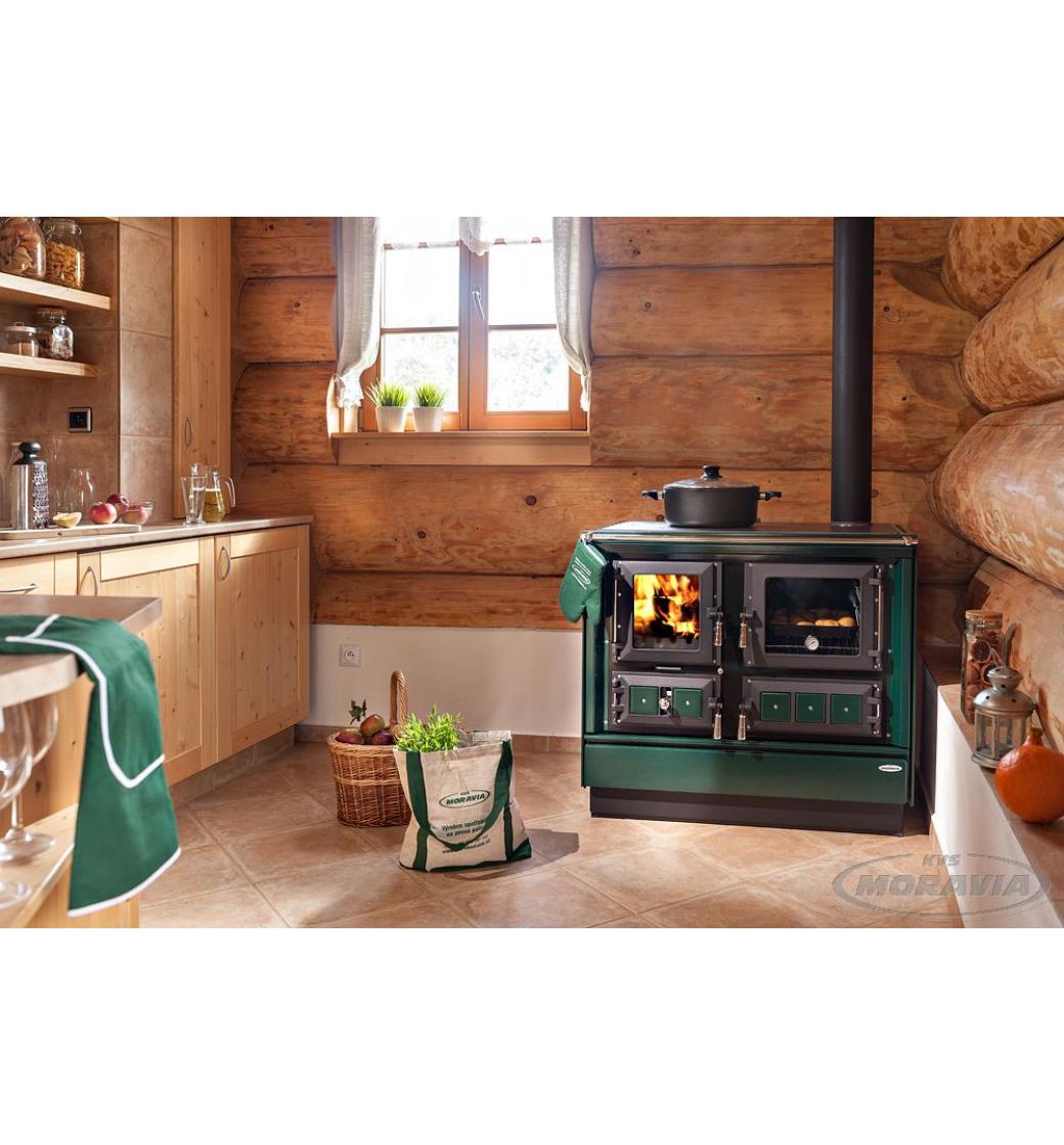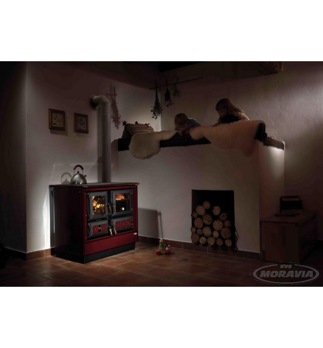 Tento typ propojuje výhody krbových kamen a sporáku, protože kromě vaření, pečení a vytápění okouzluje tím, že je možné vidět i plápolající oheň přes prosklená dvířka topeniště. Materiály použité při výrobě tohoto typu jsou podobné ve srovnání s ostatními typy spotřebičů KVS MORAVIA.