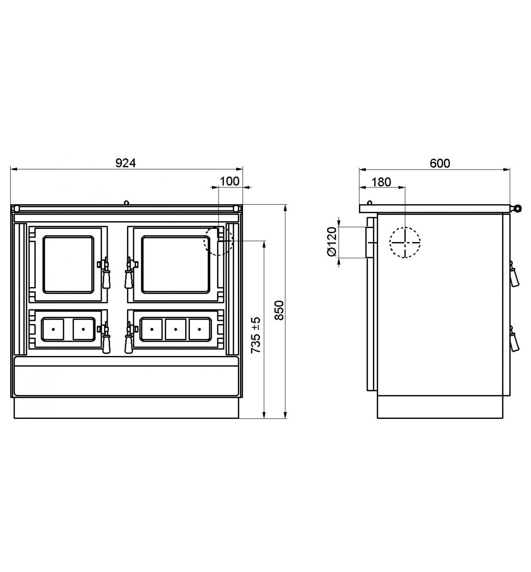 Sporák má rozměrnější topeniště na úkor pečící trouby, která je menších rozměrů v porovnání s typem 9100 a 9103. Přesto je trouba dobře funkční a vybavená mřížkou a pečicím plechem. Vzhledem k tomu, že má tento typ rozměrná vstupní dvířka do topeniště, mohou se do něj vkládat polena až o průměru 190 mm a délce 450 mm. Z tohoto pohledu bude tento typ vhodnější, pokud preferujete vytápění před pečením a vařením.