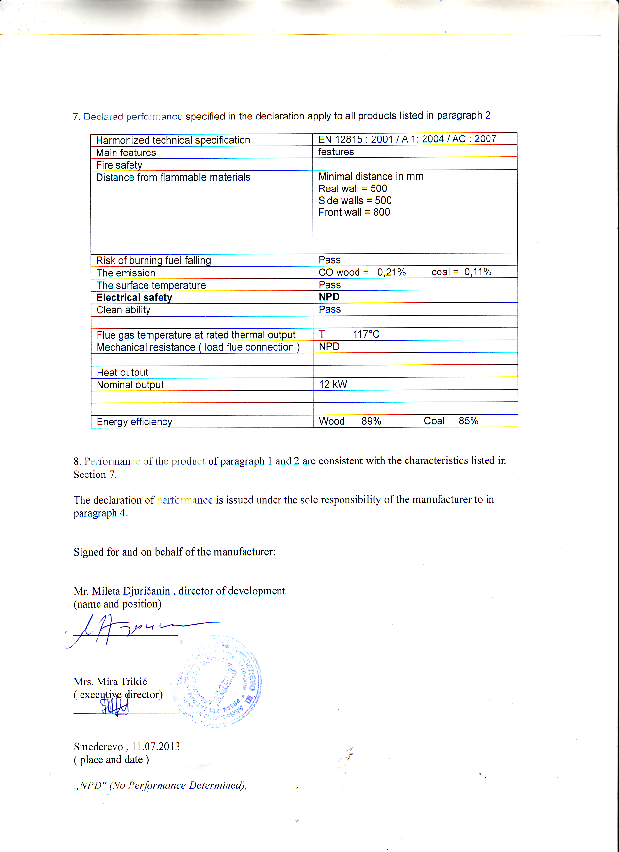 | Průměr kouřovodu (mm): | 120 |