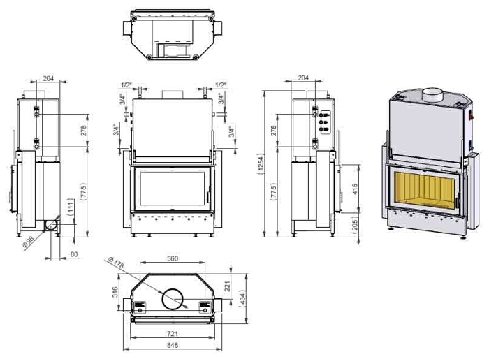 Teplovodní krbová vložka Kretz B104 - V15