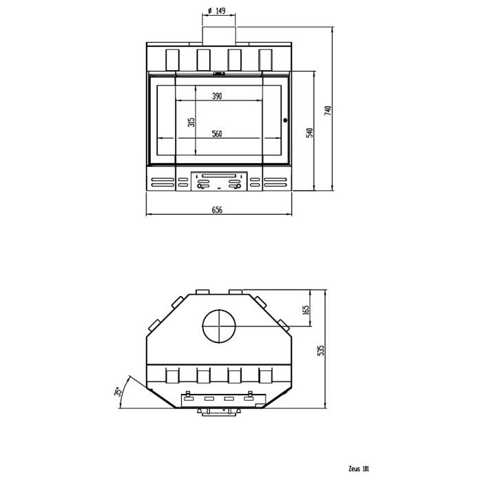 Krbová jednoplášťová ocelová vložka - topeniště litina.