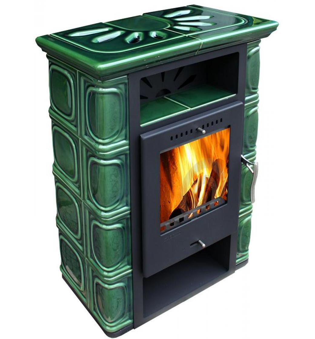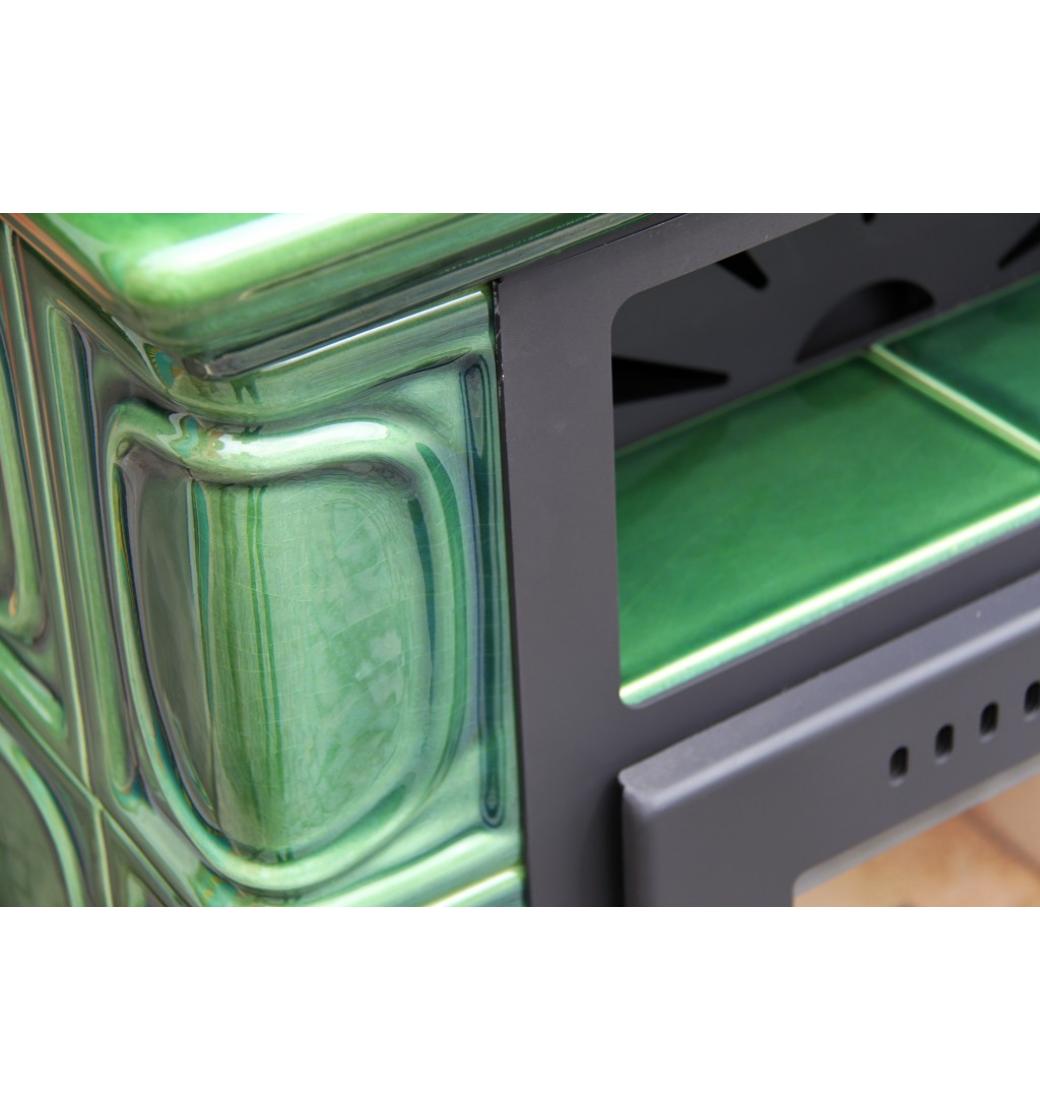 Krbová kamna Thorma Borgholm keramik jsou kamna vyrobená s kachlovým obkladem – odstíntmavě zelená lahvová - polévaná glazura