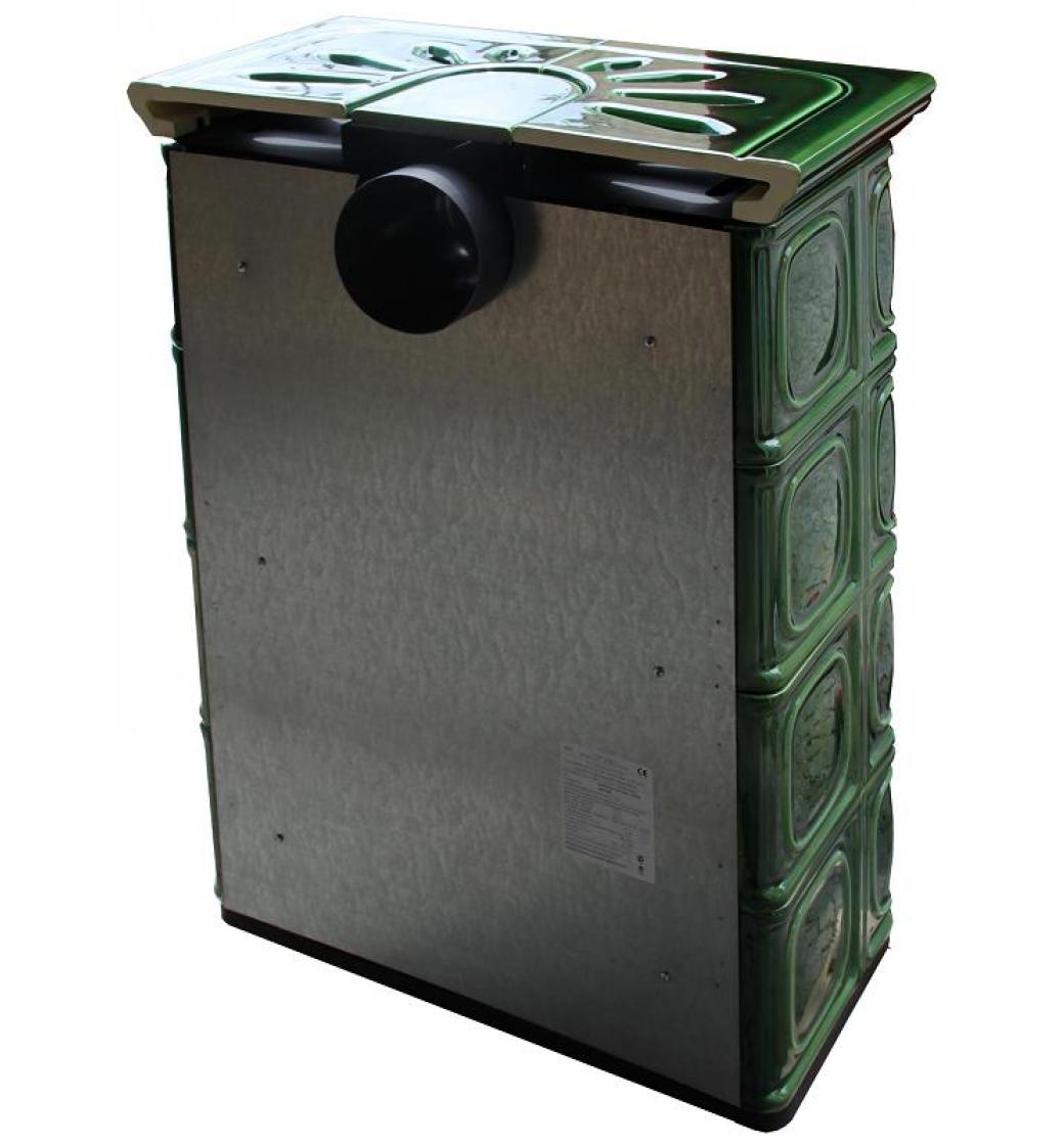 Krbová kamna Borgholm TOP Keramik, olivově zelená keramika, průměrný výkon 7 kW (rozsah výkonů 3,5 až 10,5 kW), účinnost 79%, pro kouřovod DN 150 dozadu nebo nahoru.