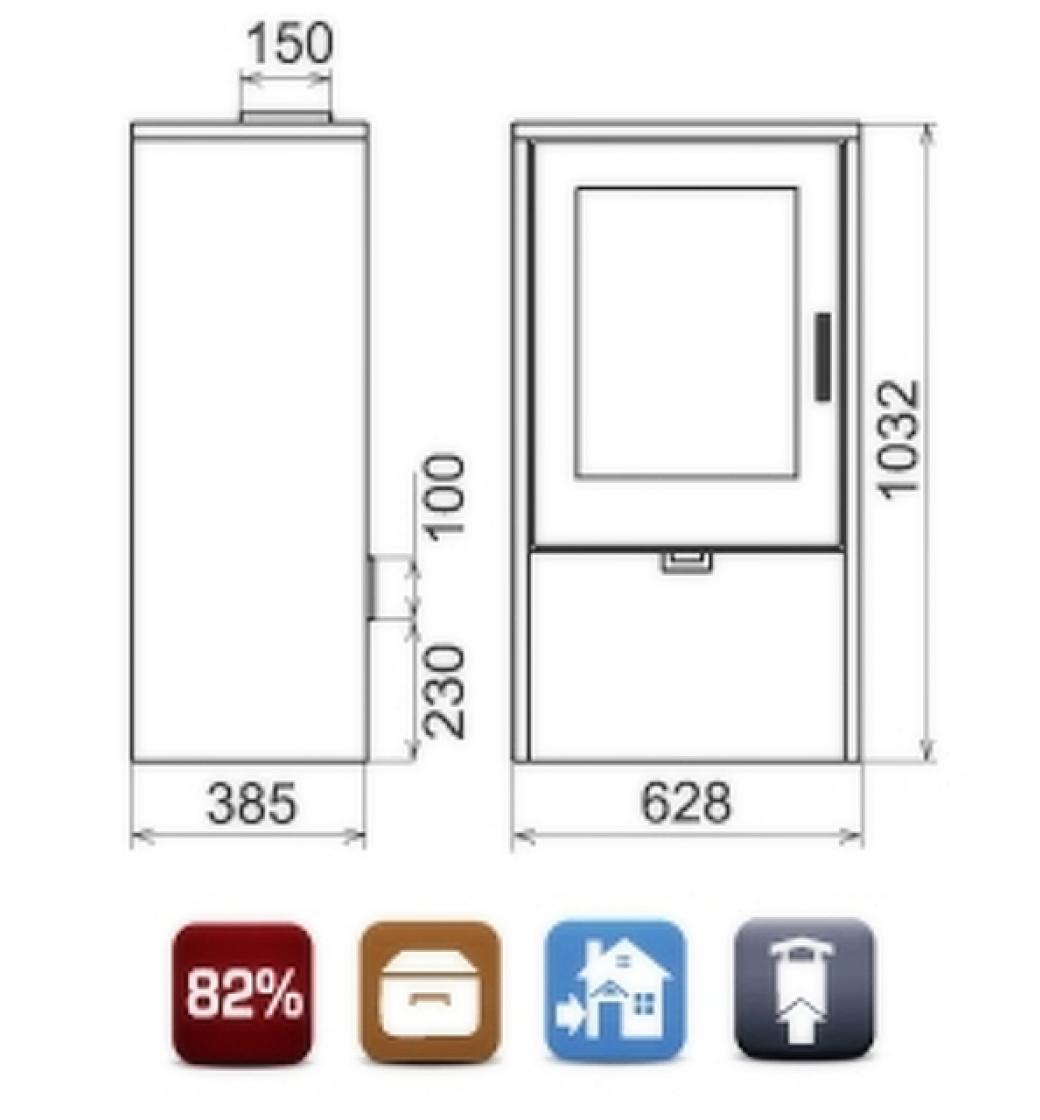 Regulace spalování je na přívodech primárního a sekundárního vzduchu. Vývod kouřovodu je shora. U těchto kamen doporučujeme možnost napojení přívodu vzduchu pro spalování z exteriéru. Na zadní straně kamen je hrdlo D100, které můžete napojit flexibilní hadicí D100 na větrací šachu komína, do sklepa, do chodby, nebo přes zed, popřípadě podlahou do exteriéru. Tím zaručíte stálý přísun vzduchu pro spalování a zvýšíte úroveň a kultivovanost hoření. Potom také tato krbová kamna nebudou závislá na přísunu vzduchu do místnosti s instalovanými kamny. Běžně se stává, že při zapnutí digestoře nebo odsávání v přilehlé mísnosti (toaleta, koupelna) se udělá v obytných prostorách podtlak, kamna vykuřují, popřípadě se velmi špatně přikládá. Připojením krbových kamen na nezávislý přívod vzduchu z exteriéru nemáte tyto starosti.