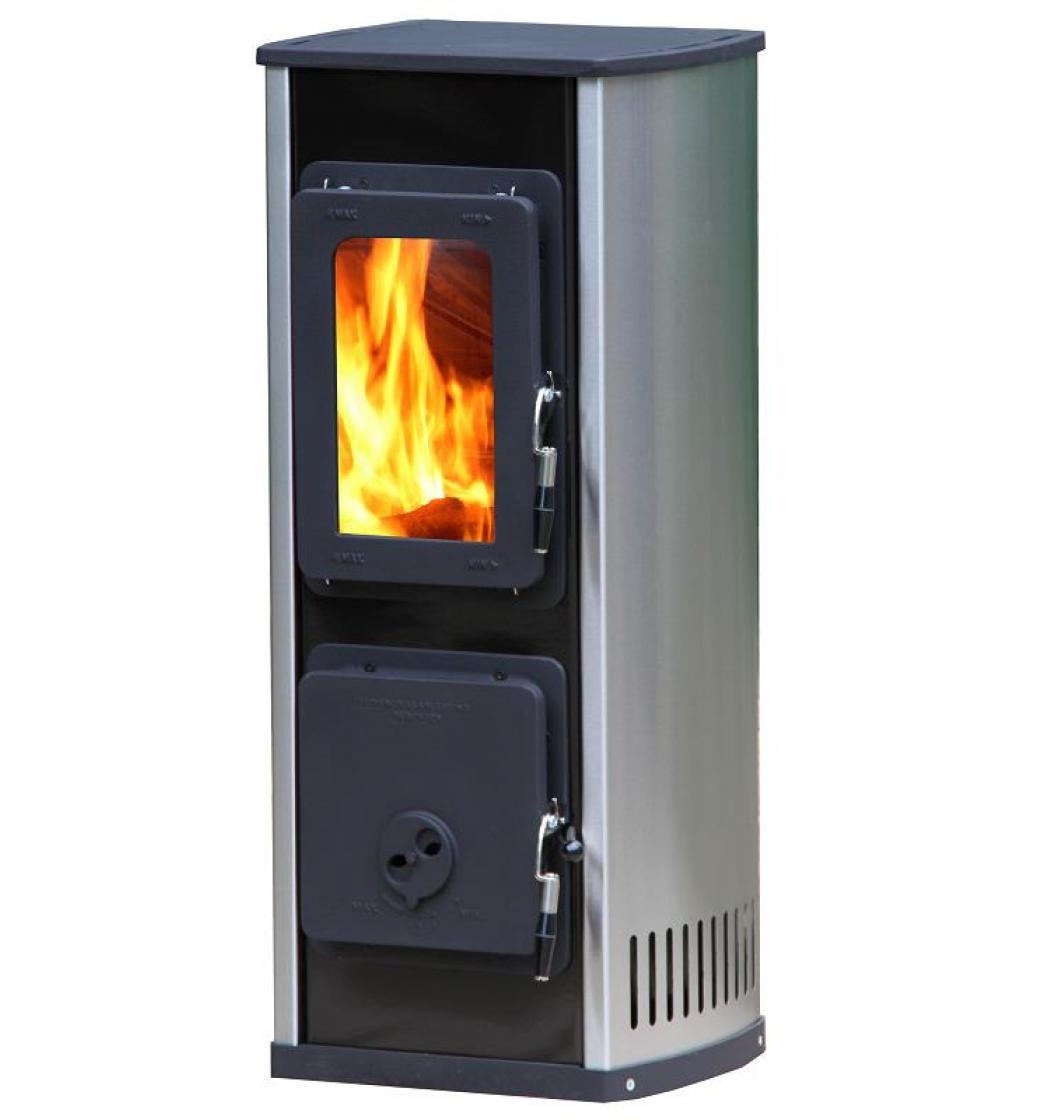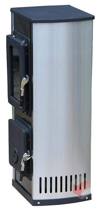 Plášť kamen je z nerezu, topný korpus kamen má trvanlivý smalt. Přikládací a popelníkové dveře jsou z velmi odolné litiny, upravené odolnou barvou proti teplu a otěru.