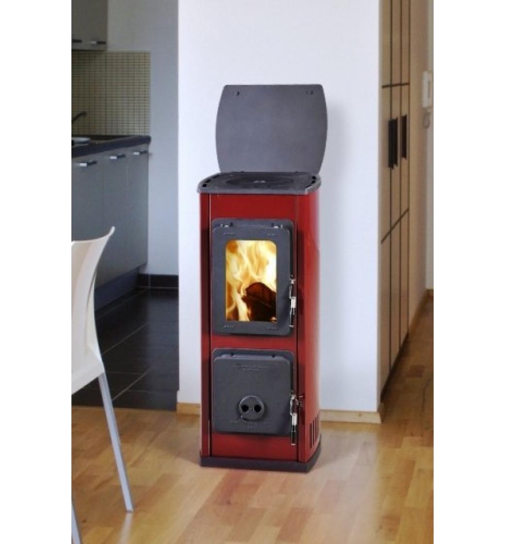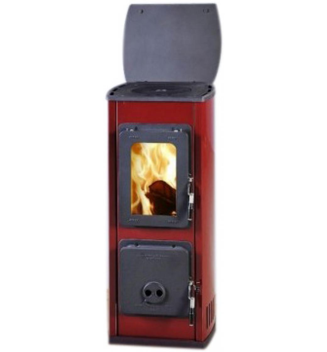 Krbová Kamna Milano II B vínová-dvouplášťová s víkem - malá smaltovaná kamna pro vytápění jedné místnosti a přilehlých prostor.