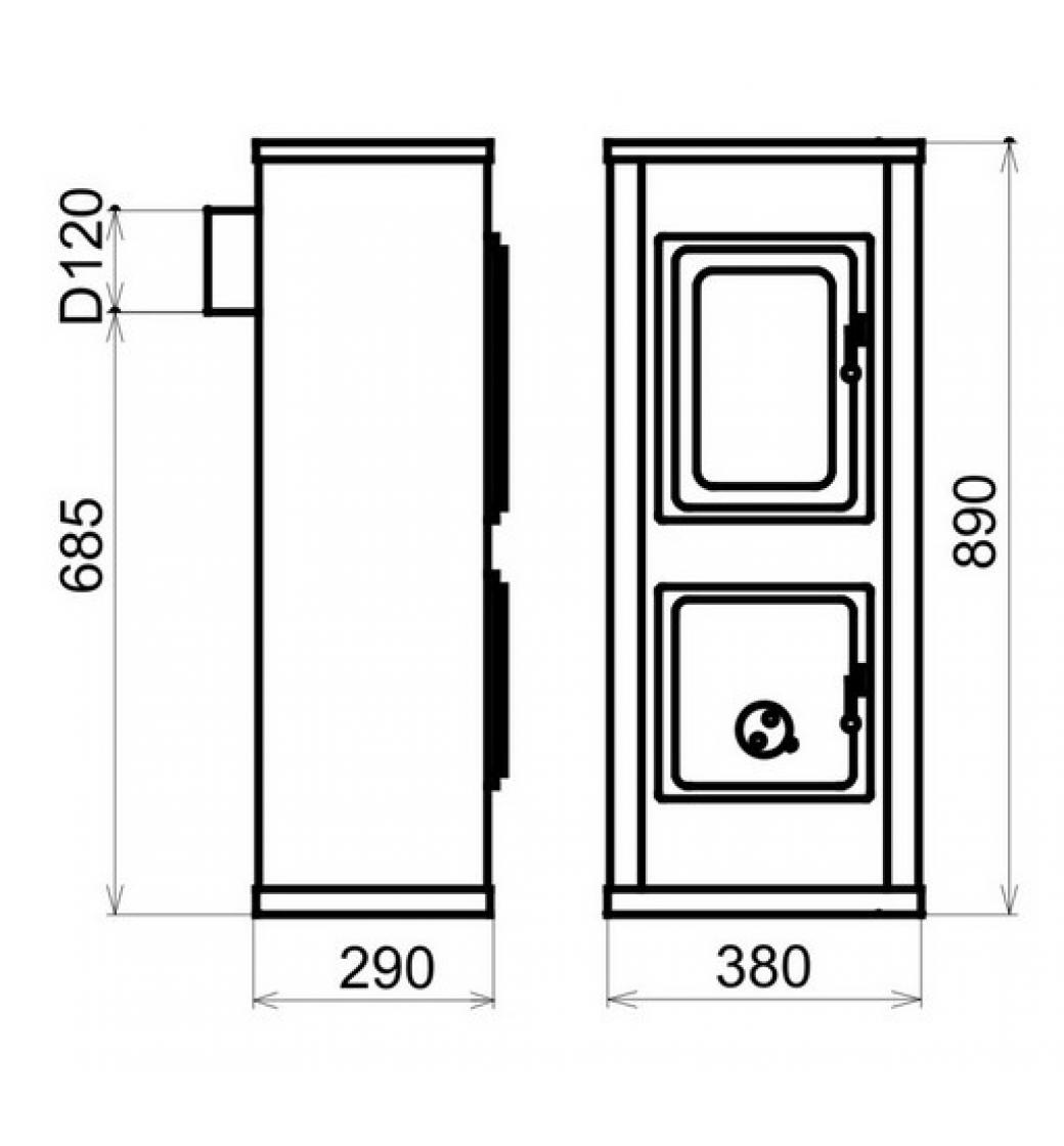 Přikládací a popelníkové dveře jsou z velmi odolné litiny, upravené odolnou barvou proti teplu a otěru.