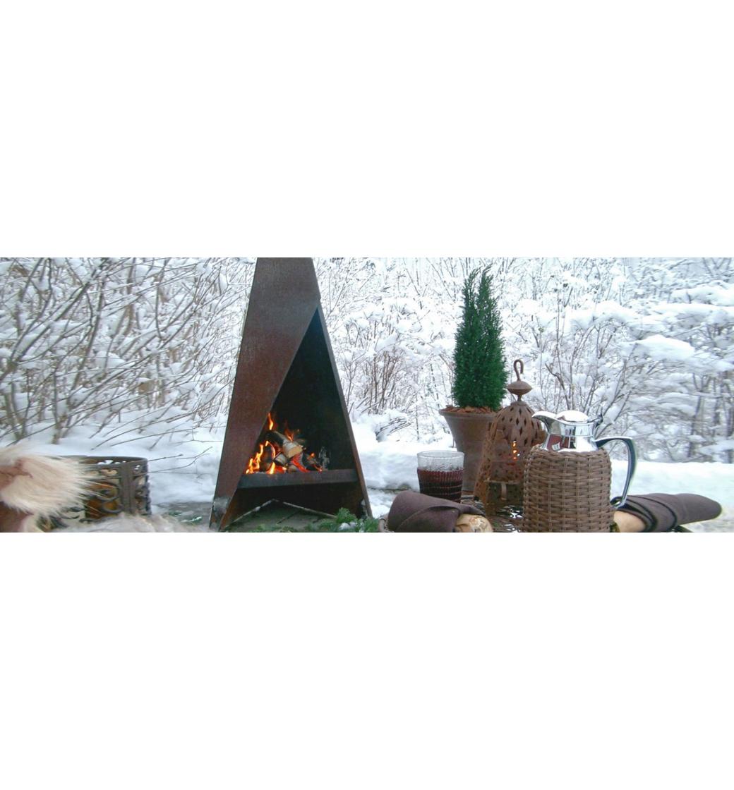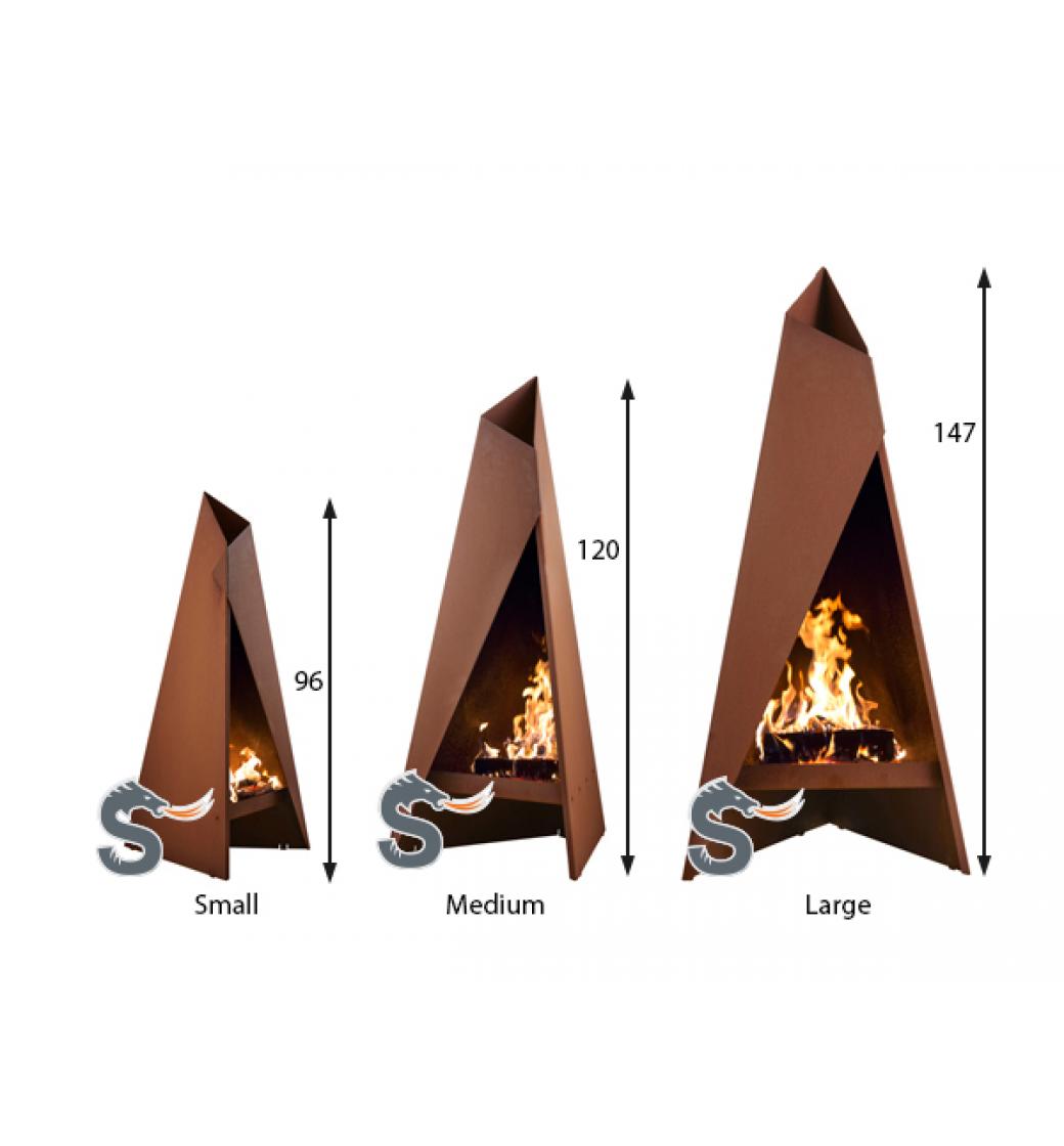 Venkovní krby a grily Tipi jsou unikátní designové venkovní krby a zároveň i venkovní grily díky volitelnému vkládanému grilovacímu roštu.