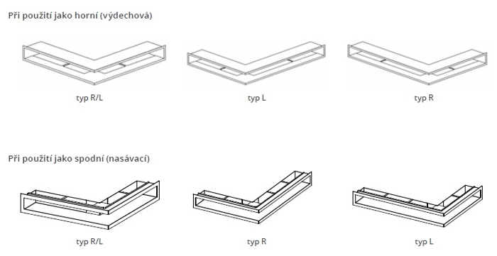 Upozornění: při použití ve spodní části krbu (jako nasávací), je třeba zvolit obrácený typ