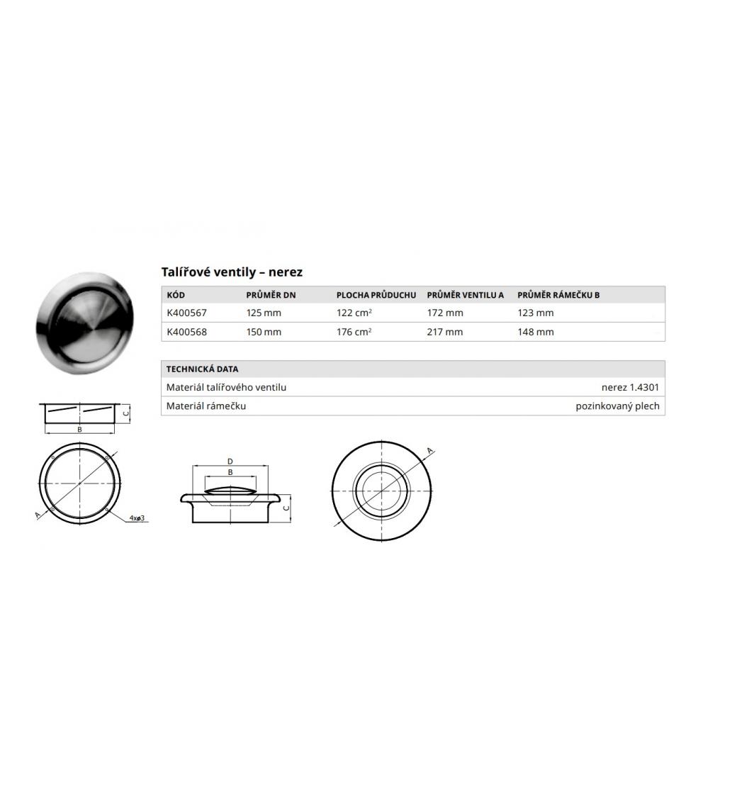 | Materiál talířového ventilu: | nerez 1.4301 |