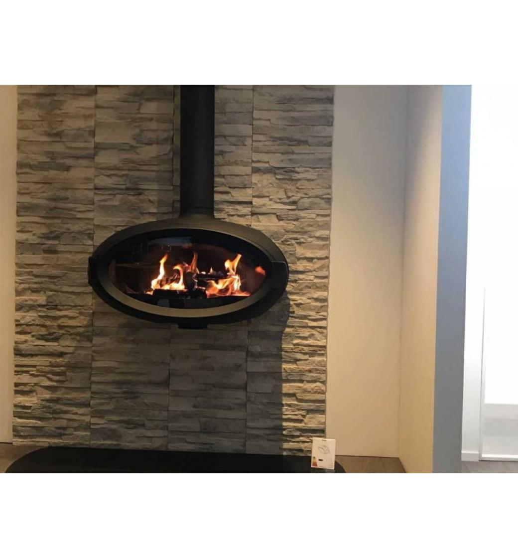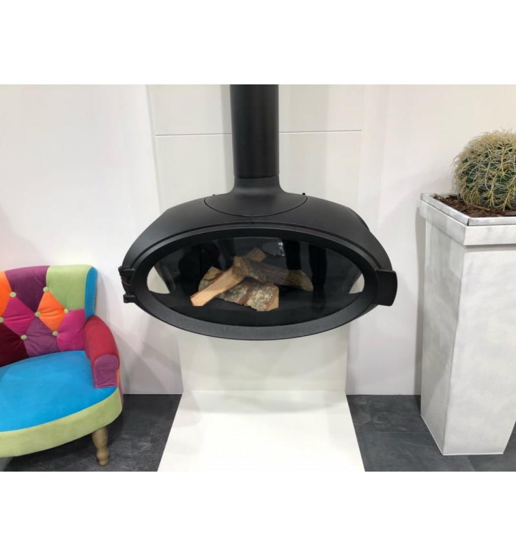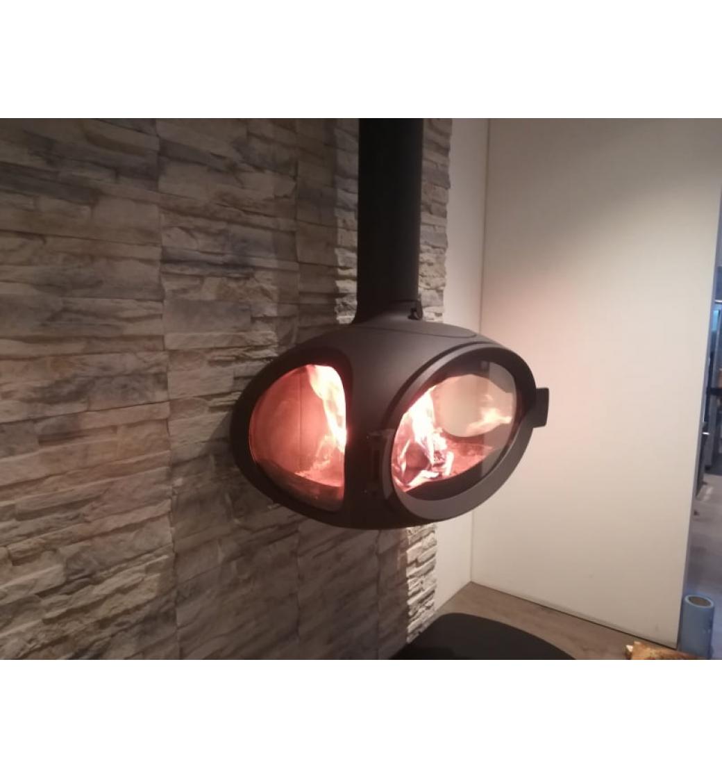 Wanders Mata - závěsná litinová oválná kamna s prosklením ze 3 stran
